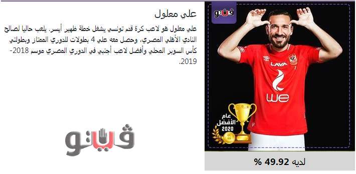 علي معلول يحسم لقب أفضل ظهير أيسر في استفتاء "فيتو 2020"