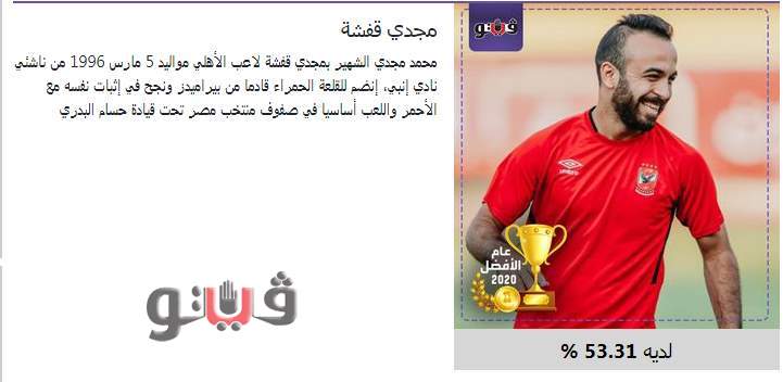 الأهلى، بلقب أفضل صانع ألعاب فى استفتاء "فيتو" لاختيار الأفضل فى عام