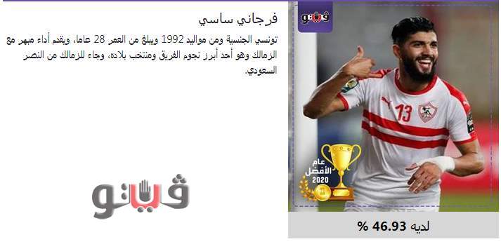 فرجاني ساسي يفوز بلقب أفضل محترف في استفتاء "فيتو 2020"