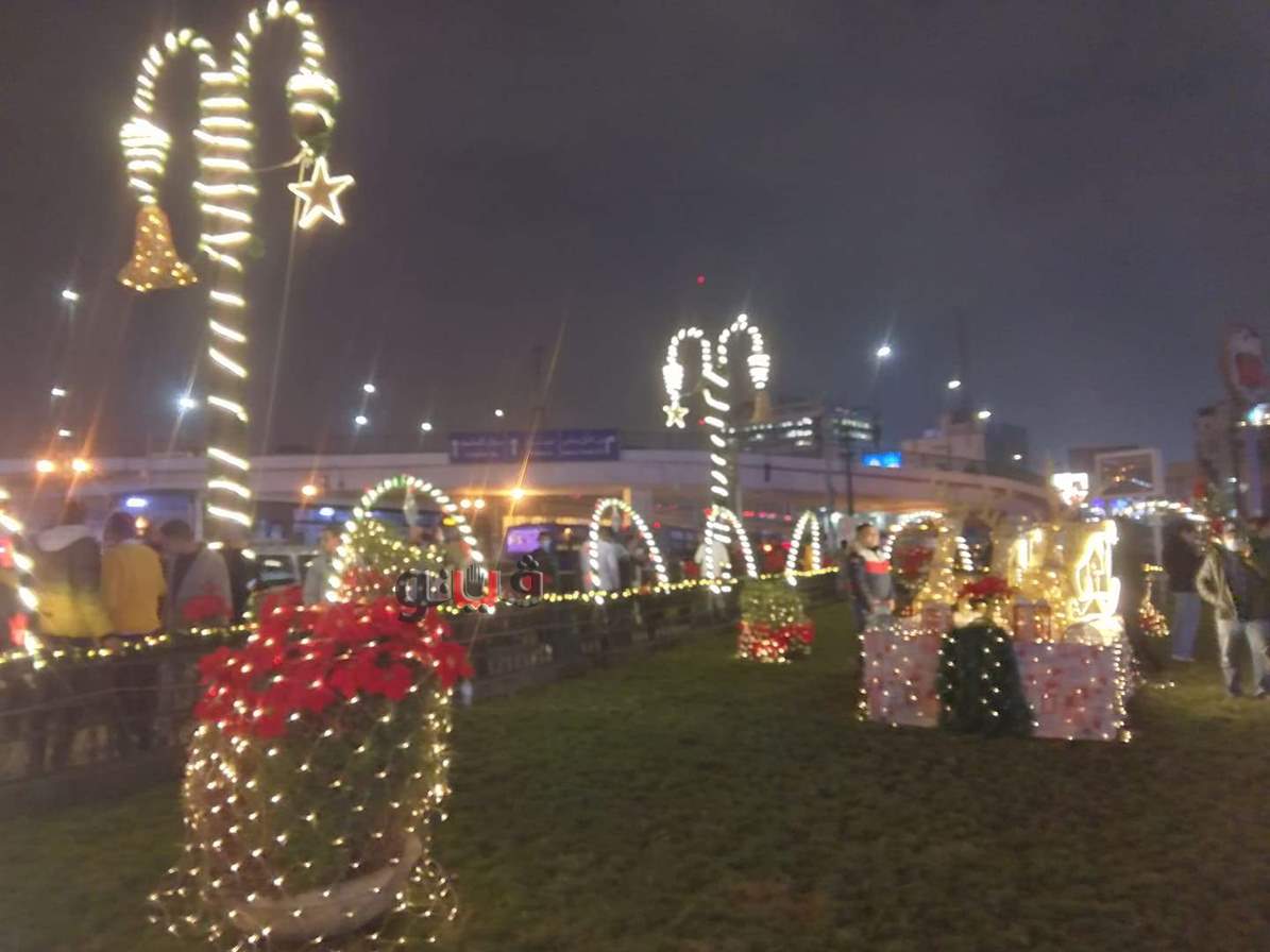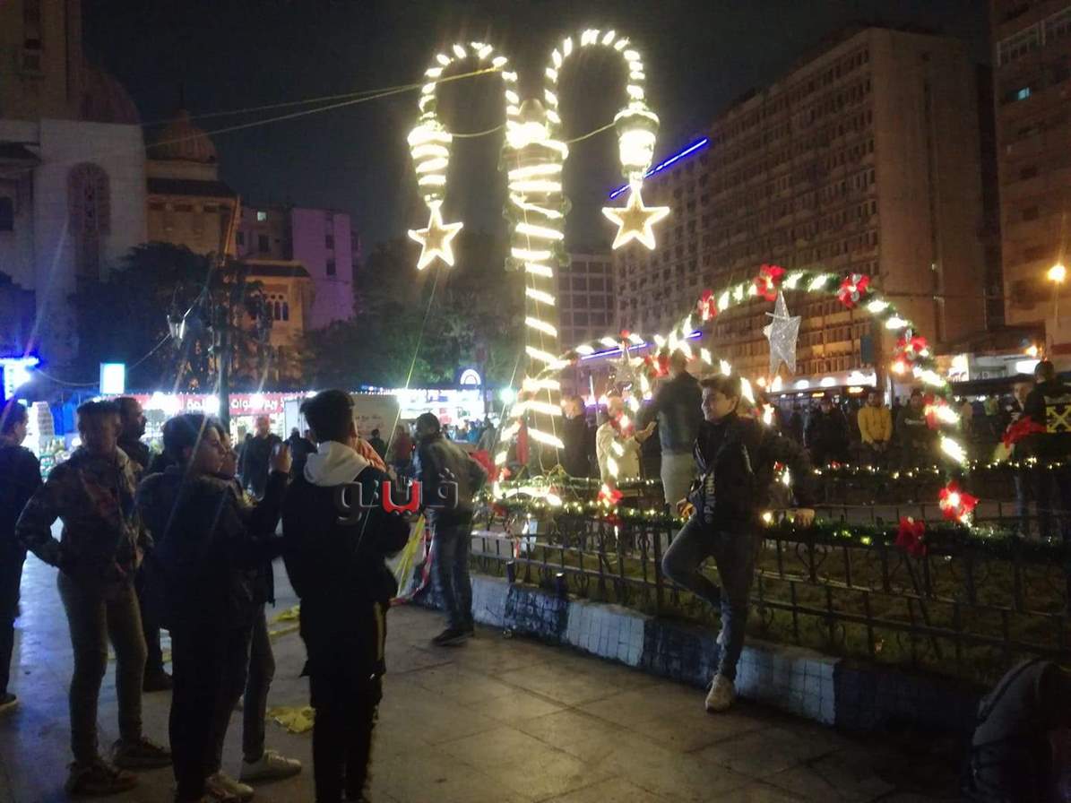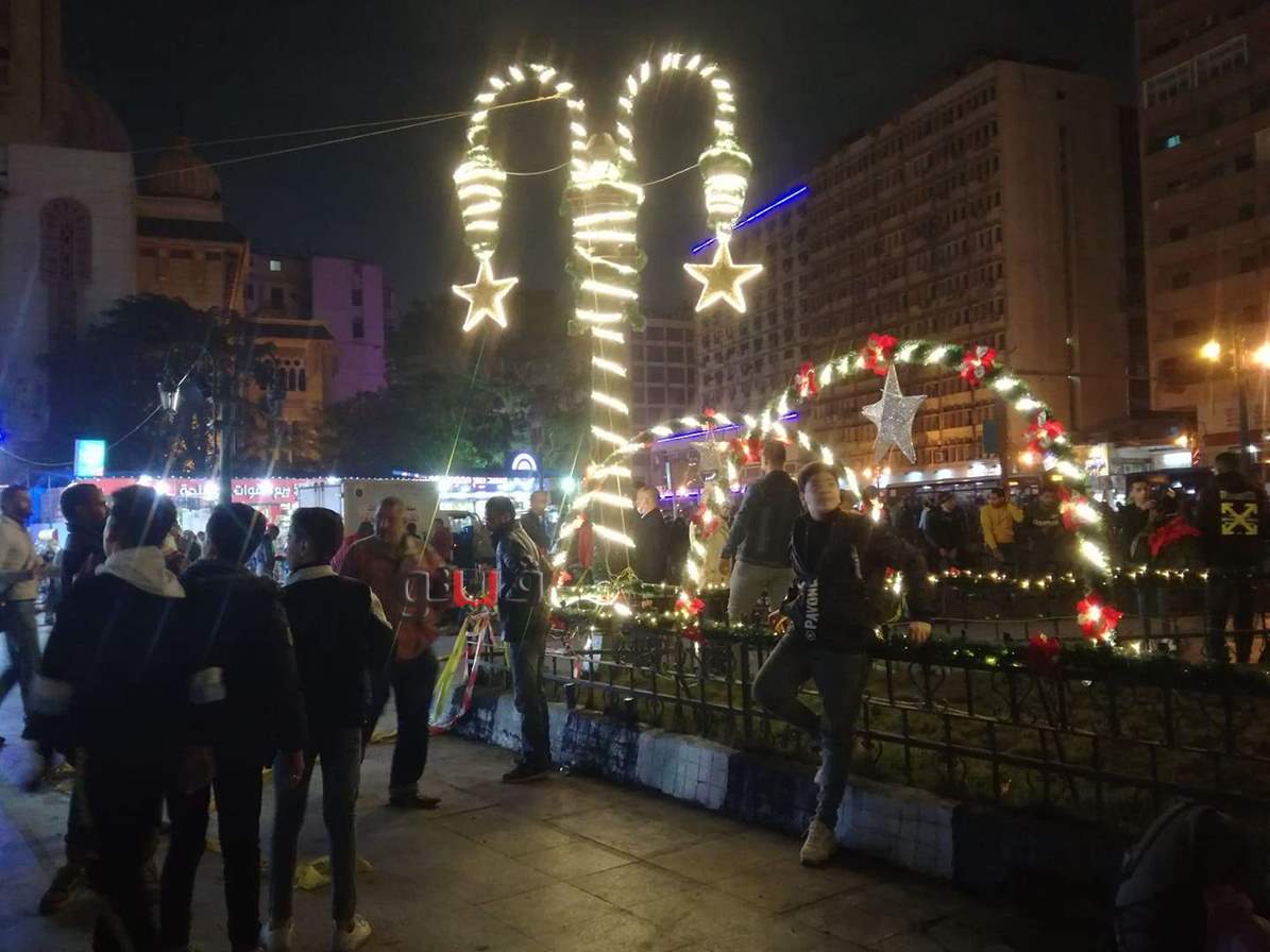 وجذب ميدان رمسيس المواطنين بسبب إضاءته بزينة أعياد الميلاد ما دفع الكثيرون إلى الوقوف لالتقاط الصور التذكارية.