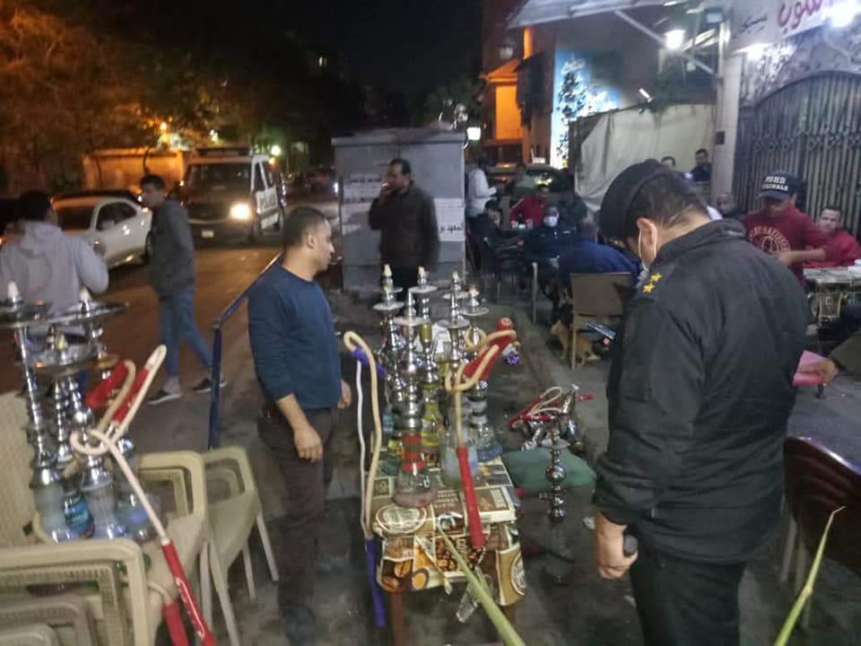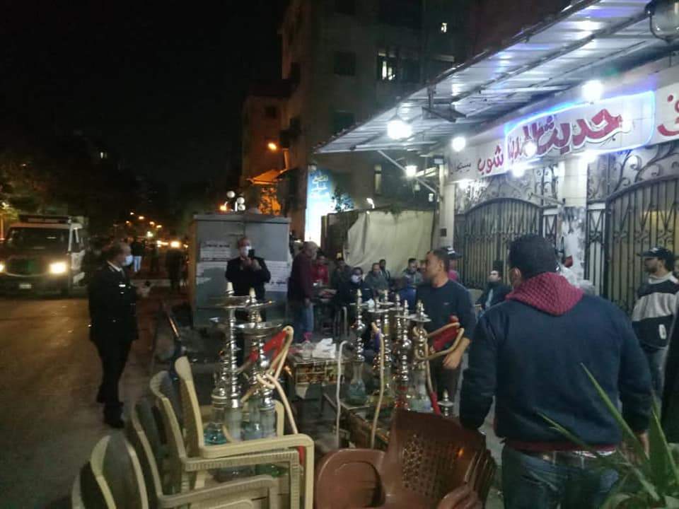 كما تم تشميع 2 مقهي بشارع ترعه الزمر بالعمرانية ومقهي بمدينة الحوامدية لتقديم الشيشه للمواطنين الي جانب 13 محل وورشه حرفيه غير ملتزمة بمواعيد الغلق بالحوامدية والطالبية وشمال الجيزة.