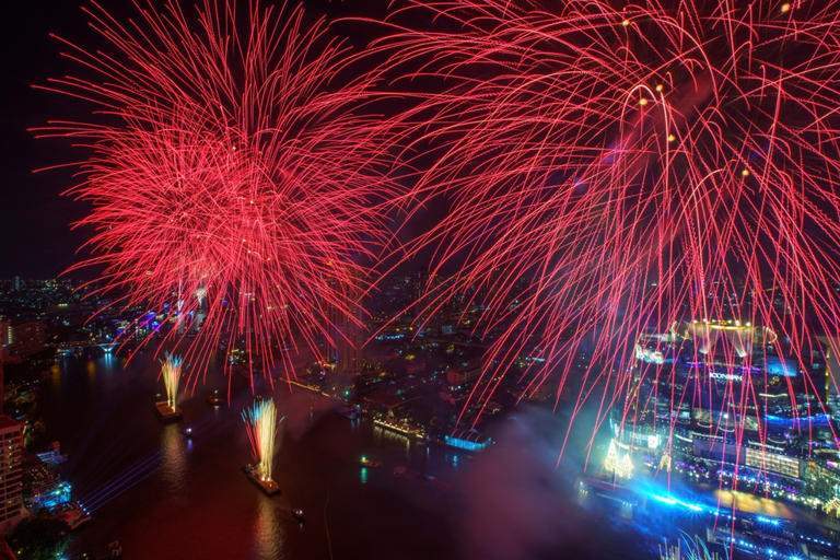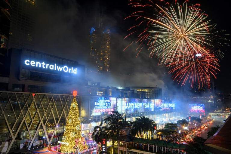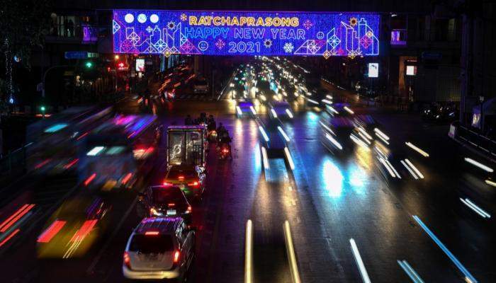 أضاءت سماء العاصمة التايلاندية، بانكوك، 25 ألف لعبة نارية، احتفالًا بقدوم العام الجديد، وبدون حضور جمهور تحسبًا لتفشي كورونا.