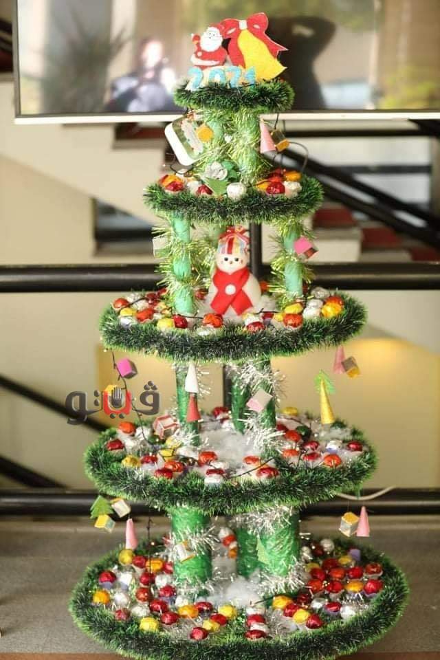 قدم فريق التوعية الطلابية بوزارة البيئة تصميمًا جديدًا لشجرة الكريسماس بمناسبة أعياد رأس السنة من مكونات صديقة للبيئة من المخلفات المنزلية من ورق الجرائد، كراتين بيض، وكرتون الفويل، كراتين قديمة، علب لبن مستهلكة وتزيينها بالسلوفان وفروع الشجر، لتحقيق منظر جمالي في المنزل وتوفير التكلفة المرتفعة لأشجار الكريسماس.