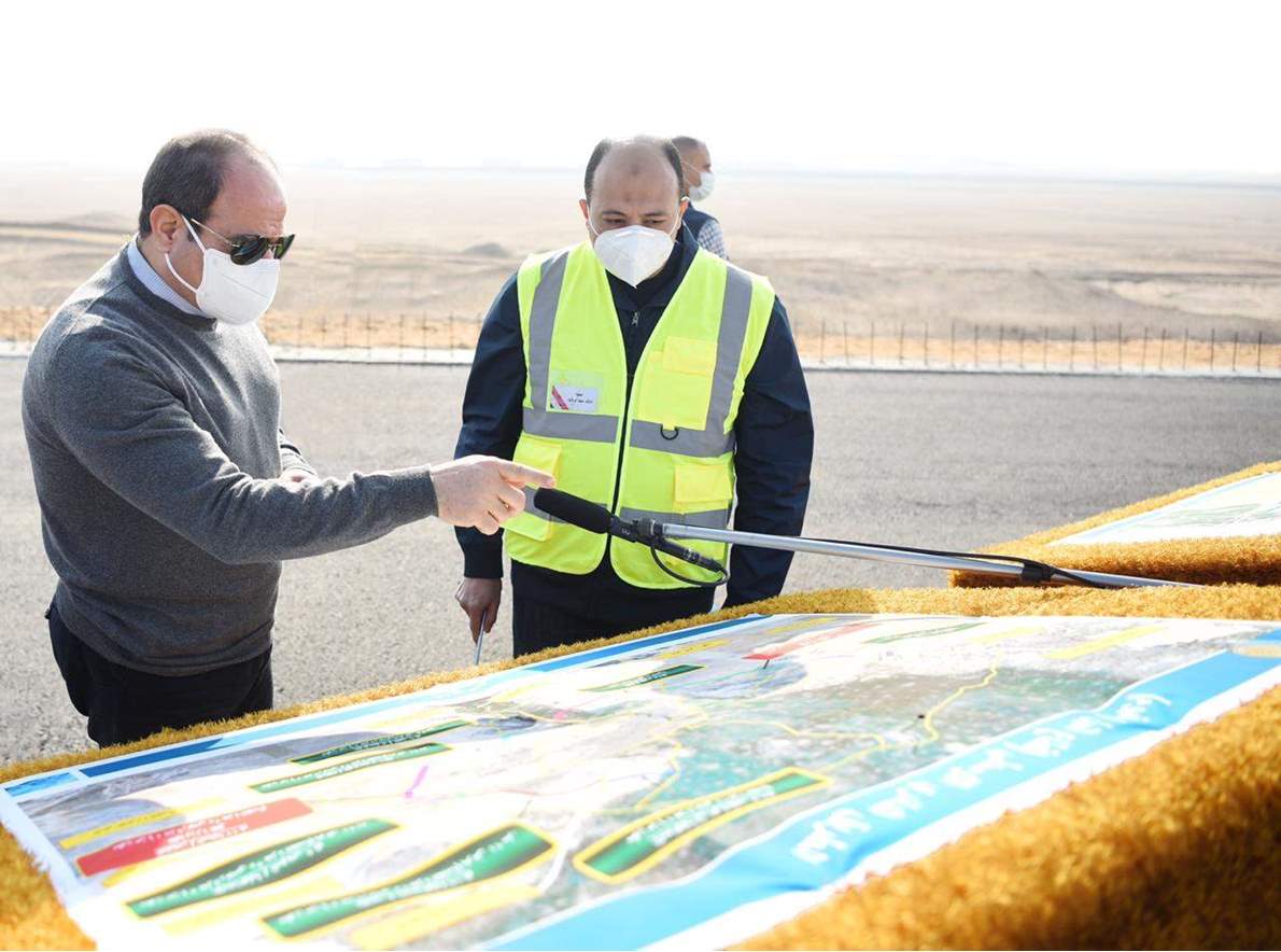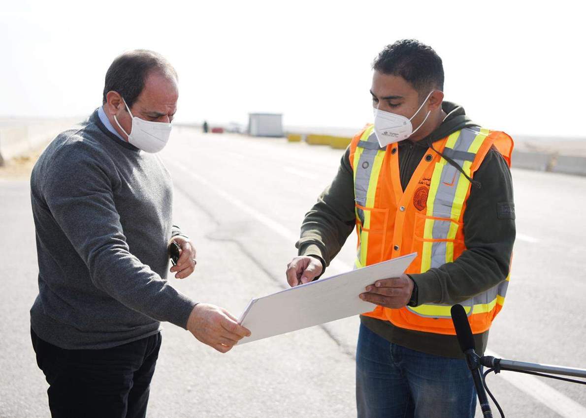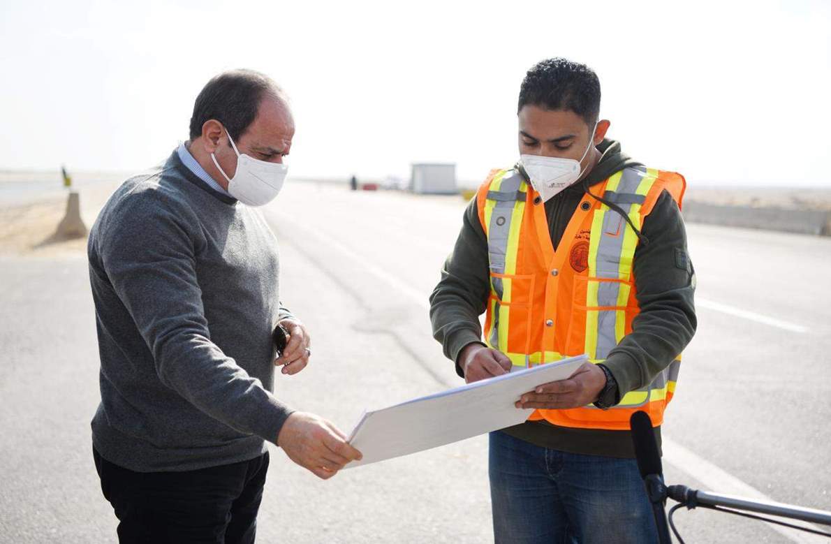 و توقف الرئيس اثناء الجولة التفقدية ليناقش العاملين والمسؤولين بعدد من مواقع العمل المختلفة في محيط منطقة الهرم وطرق الفيوم واسوان والدائري الاوسطي، حيث وجه بتطهير وتبطين كافة الترع والمصارف بالمنطقة ورصف ورفع كفاءة الطرق علي جانبيها ضمن المشروع القومي لتبطين الترع وذلك تزامناً مع افتتاح الطريق الدائري الاوسطي، كما اطلع الرئيس علي سير الخطوات التنفيذية الراهنة للانشاءات، مؤكدا علي المباديء الثابتة بالالتزام بالجداول الزمنية المحددة للانتهاء من الاعمال وبالمواصفات الفنية والهندسية العالية، فضلاً عن التطبيق الدقيق للاجراءات الاحترازية للوقاية من انتشار فيروس كورونا حرصاً علي صحة وسلامة العاملين.