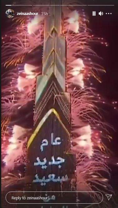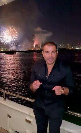 «فين ما تروح وراك».. دينا الشربيني وعمرو دياب يحتفلان برأس السنة في دبي | صور