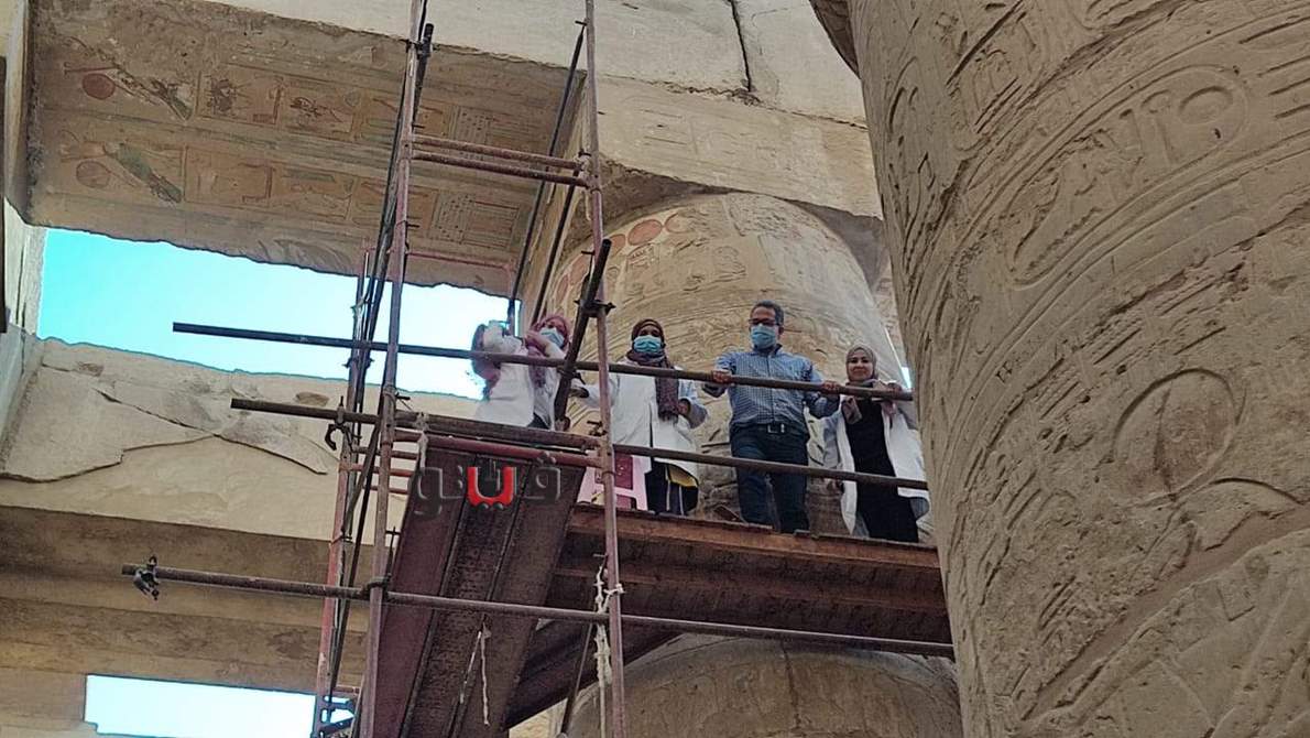 أشار إلي أن ذلك لمنع المياه الجوفية من التأثير السلبى على التماثيل لأنها منحوتة من الحجر الرملي، والذى يتأثر بسرعة بالماء والرطوبة الموجودة فى التربة، وكذلك وعمل قاعدة خرسانية حديثة لوضع التماثيل عليها بعد انتهاء أعمال الترميم والصيانة والتى تتم بواسطة فريق متخصص من الآثريين والمصورين والمرممين والفنيين التابعين لوزارة الآثار، وتحت إشراف الوزارة مباشرة وبالتنسيق مع منطقة آثار الكرنك.