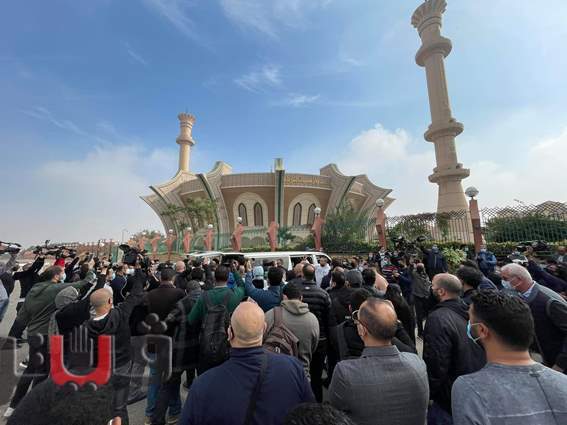 شُيع منذ قليل جثمان الكاتب الراحل وحيد حامد، من مسجد الشرطة بمدينة الشيخ زايد إلى مثواه الأخير بمقابر العائلة بطريق الواحات.