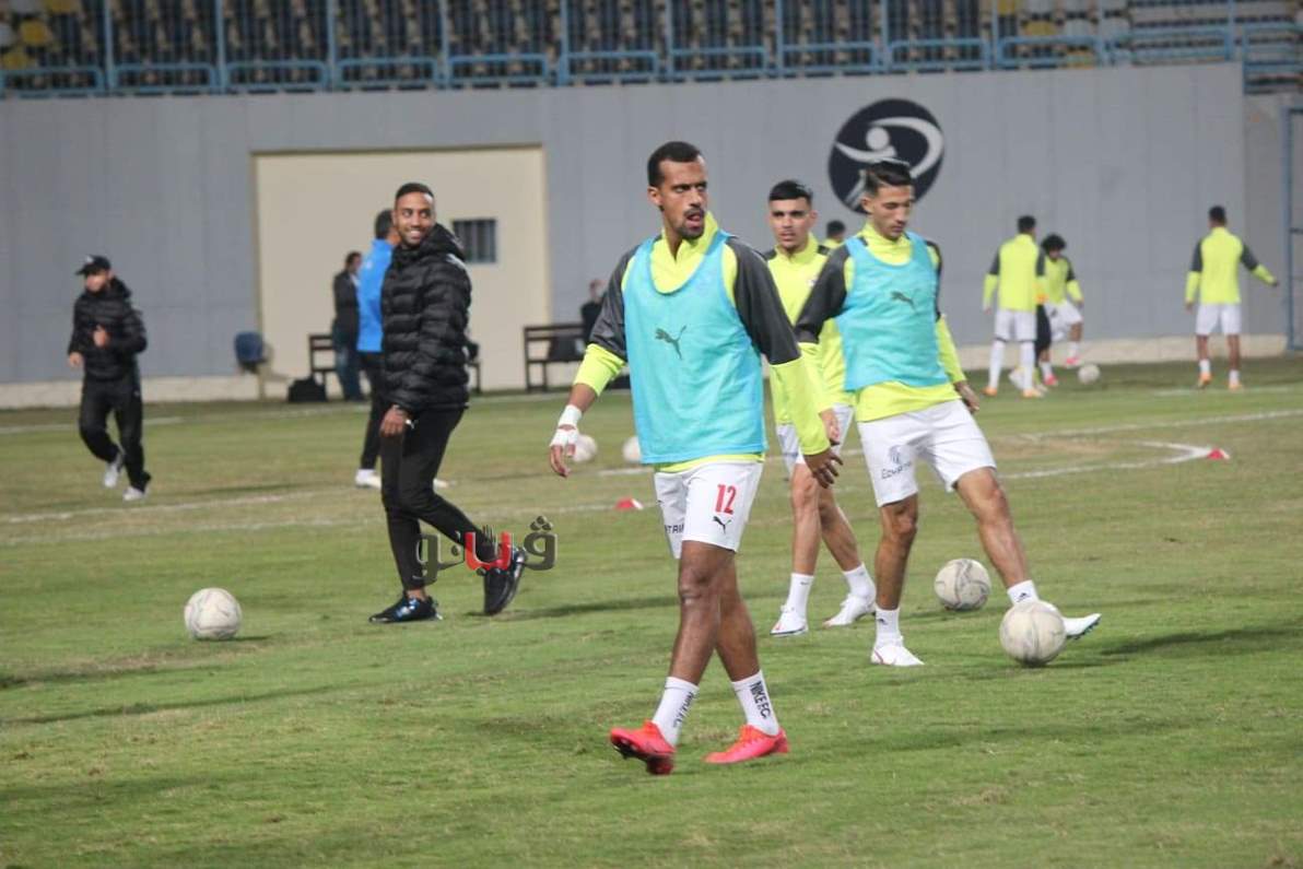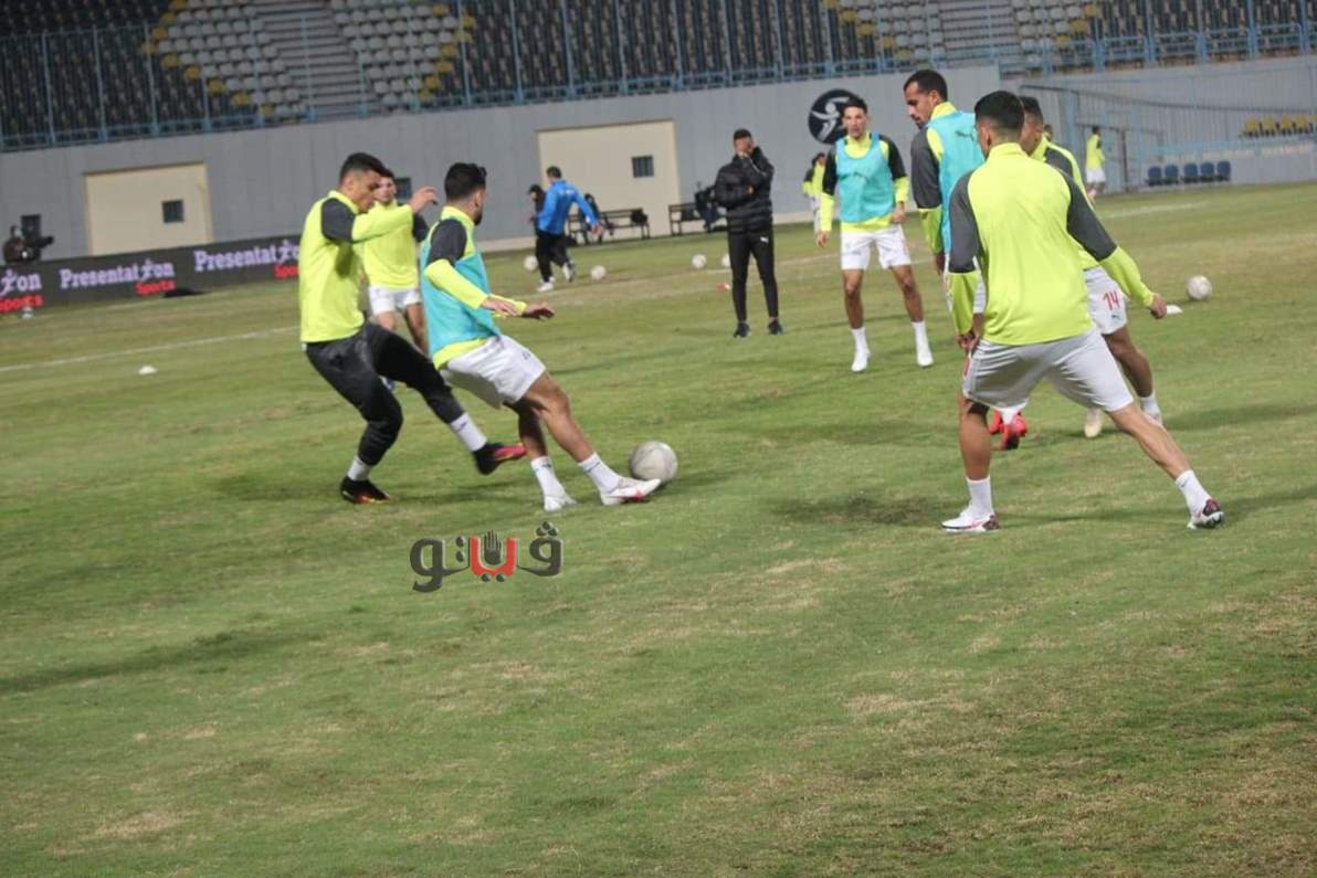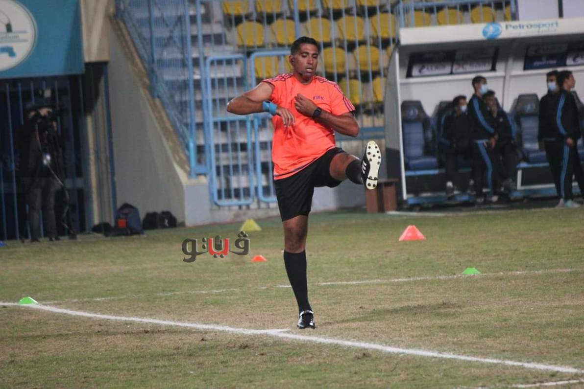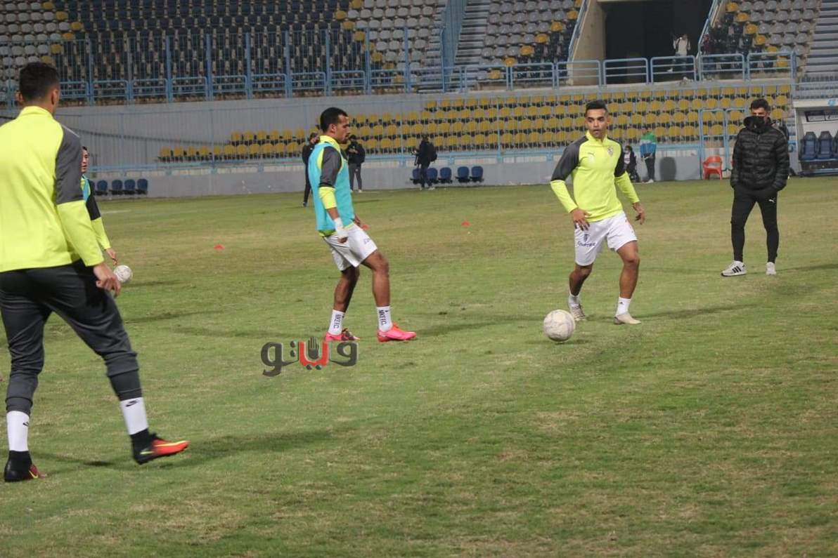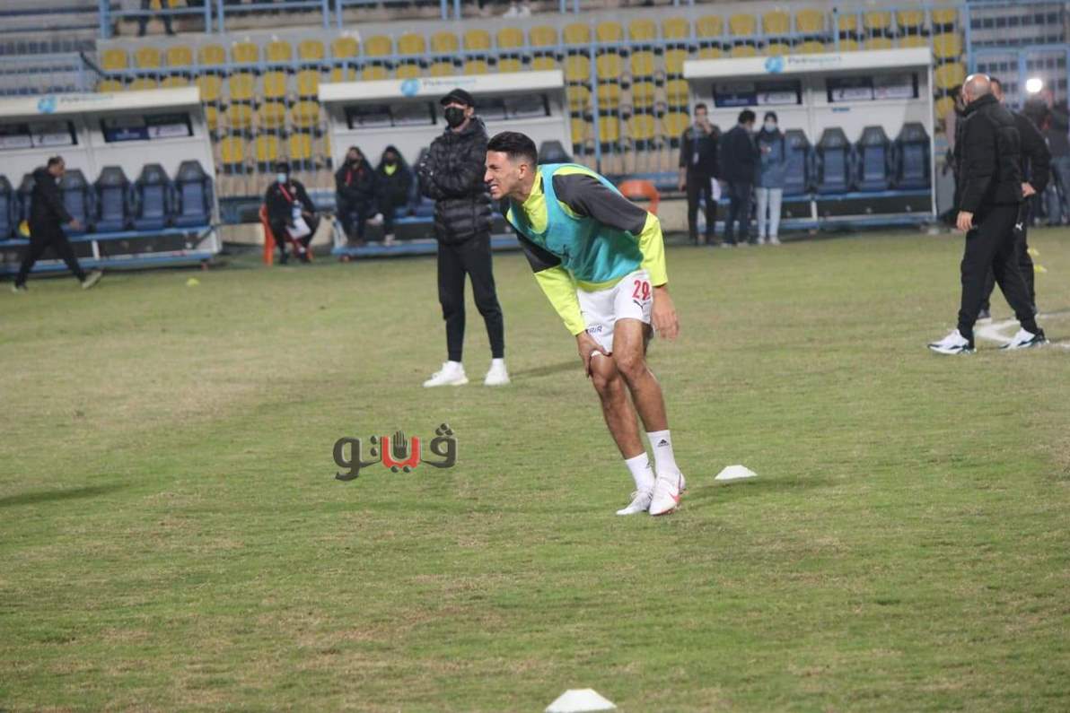 عمليات الإحماء والتسخين على أرضية إستاد بتروسبورت، قبل انطلاق مباراتهما بالجولة الخامسة للدوري العام.