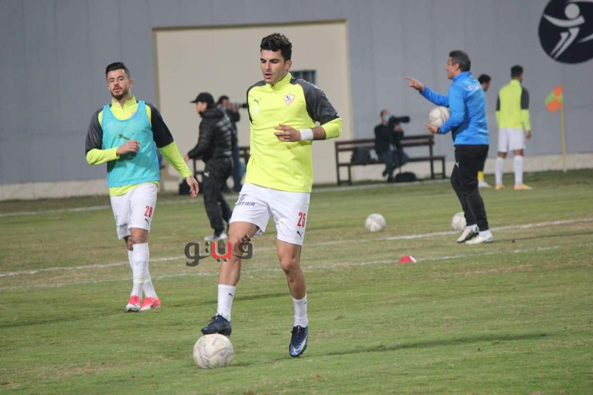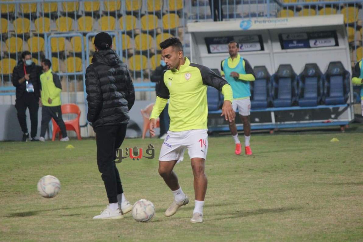 لاعبو الزمالك وإنبي يجرون عمليات الإحماء قبل المباراة | صور