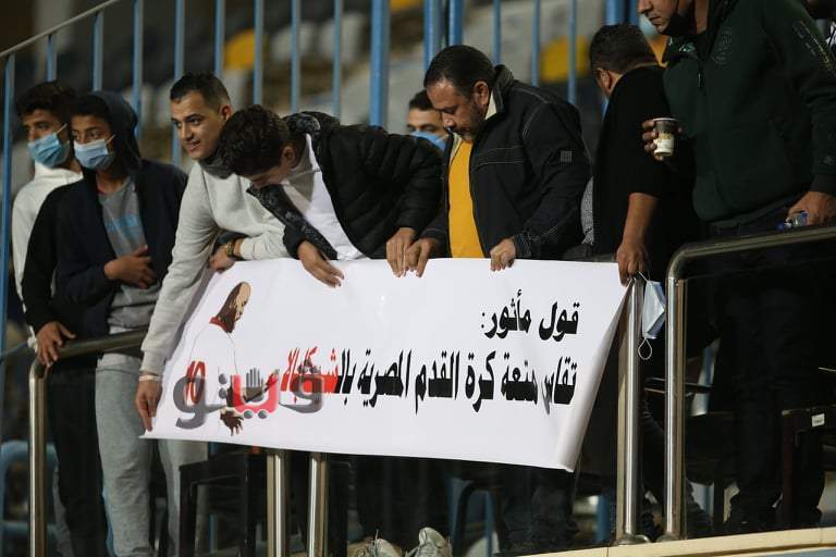 دعم لنجم القلعة البيضاء محمود عبد الرازق شيكابالا، أثناء تواجدهم في مدرجات