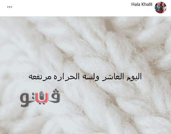 وكتبت هالة خليل تفاصيل حالتها الصحية عبر حسابها الشخصي بموقع التواصل الاجتماعي "فيس بوك"، وقالت: "اليوم العاشر ولسة الحرارة مرتفعة".