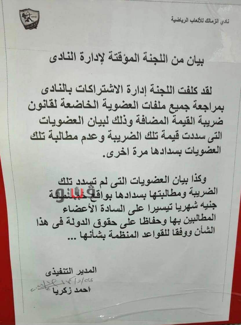 إدارة الزمالك تكلف بمراجعة ملفات العضوية الخاضعة للقيمة المضافة