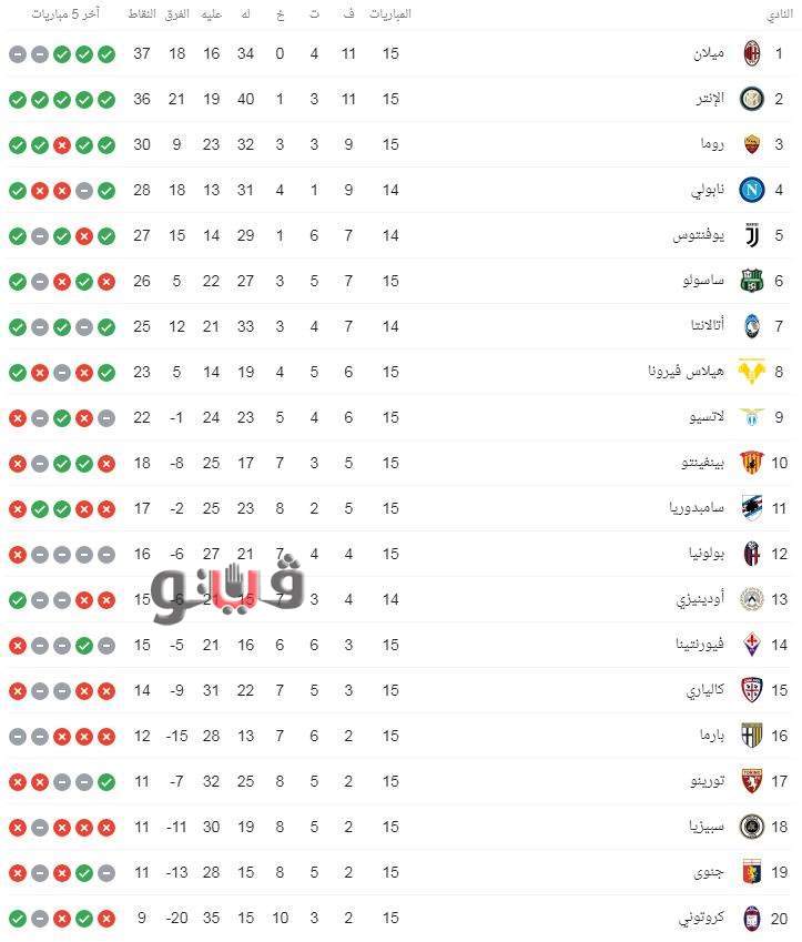 ميلان في الصدارة والإنتر يلاحقه.. جدول ترتيب الدوري الإيطالي