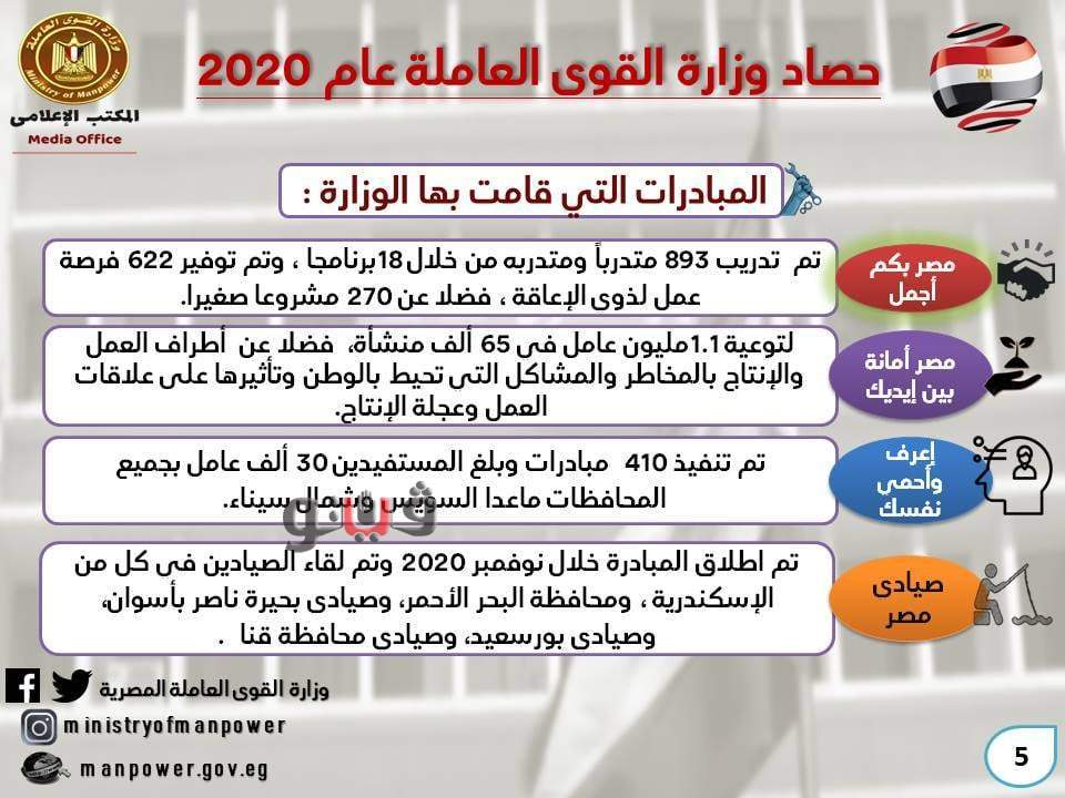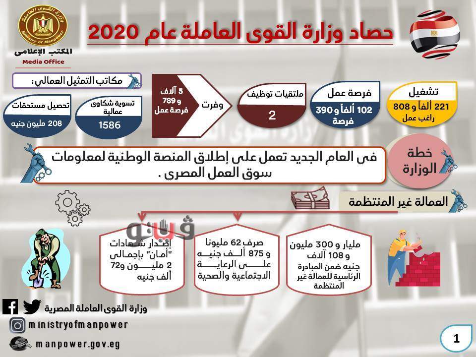 توفير 108 آلاف فرصة عمل الأبرز.. حصاد القوى العاملة 2020 | إنفوجراف