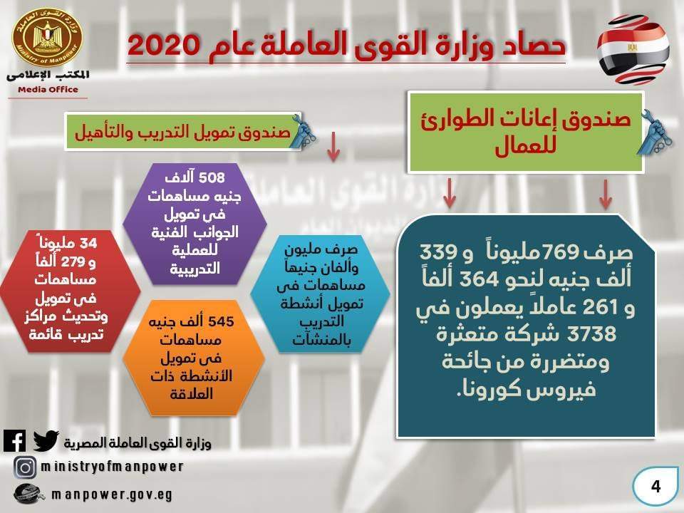 يأتى هذا فى حين بلغت المبالغ المنصرفة من صندوق إعانات الطوارئ للعمال نحو 769 مليونا و339 ألف جنيه ، لـ 364 ألفاً و 261 عاملا ، يعملون في 3738 شركة متعثرة والمتضررة من جائحة فيروس كورونا المستجد (كوفيد- 19).