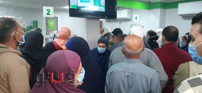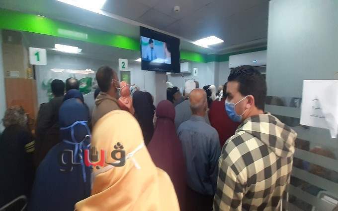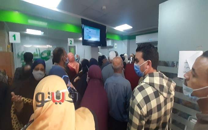 ووقف العشرات من أصحاب المعاشات والمتعاملين مع المكتب لإنهاء الخدمات البريدية المختلفة أمام البوابة في تجمعات مع تطبيق الإجراءات الاحترازية للوقاية من فيروس كورونا وذلك انتظارًا للسماح بدخولهم لإنهاء مصالحهم للزحام الشديد بالداخل الخارج عن إرادة العاملين بالمكتب.