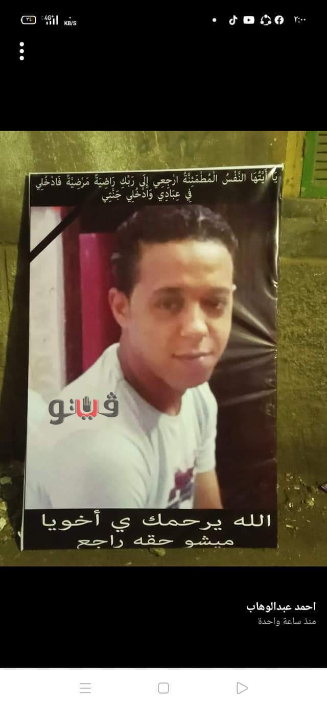 تلقي اللواء فخر العربي مدير أمن القليوبية إخطارا من مستشفي ناصر العام بوصول أحمد محمد من سكان منطقة بهتيم بشبرا الخيمة والذي توفي متأثرا بإصابته بسلاح أبيض في عدة مناطق نافذة بجسده.