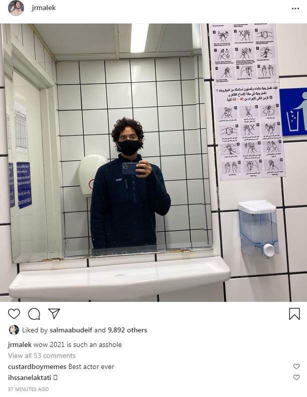 وعبر أحمد مالك عن غضبه من عام 2021، الذي لا يزال في بدايته، ونشر صورته أمام إرشادات الوقاية من فايروس كورونا داخل أحد "الحمامات"، وكتب مالك تغريدة على تويتر "واو.. 2021 مثل هذا الأحمق"