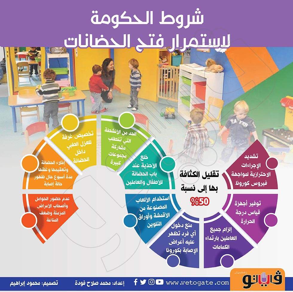 شروط الحكومة لاستمرار فتح الحضانات | إنفوجراف الأربعاء 06/يناير/2021 - 12:28 م 1/6/2021 12:28:27 PM نيفين القباج وزيرة التضامن الاجتماعي محمد صلاح فودة شارك طباعة 18 حجم الخط شارك طباعة غلق الحضانات فتح الحضانات شروط فتح الحضانات اسباب غلق الحضانات