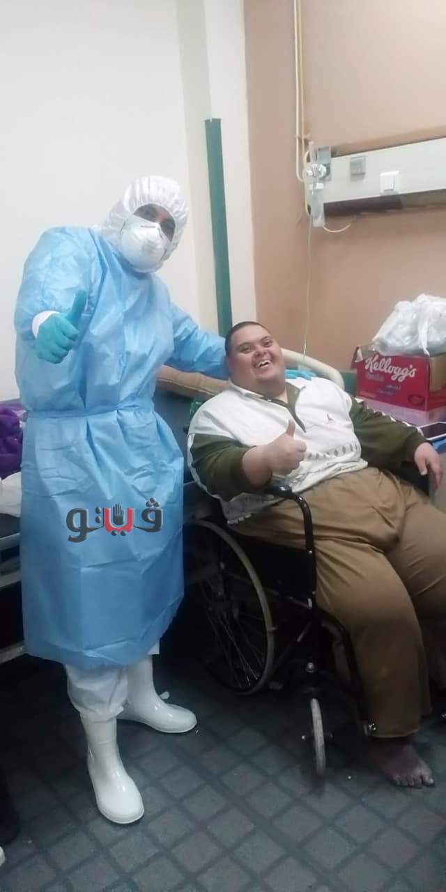 أطباء العزل بقفط يمنحون مريض كورونا من ذوي الهمم نزهة بالفناء | صور