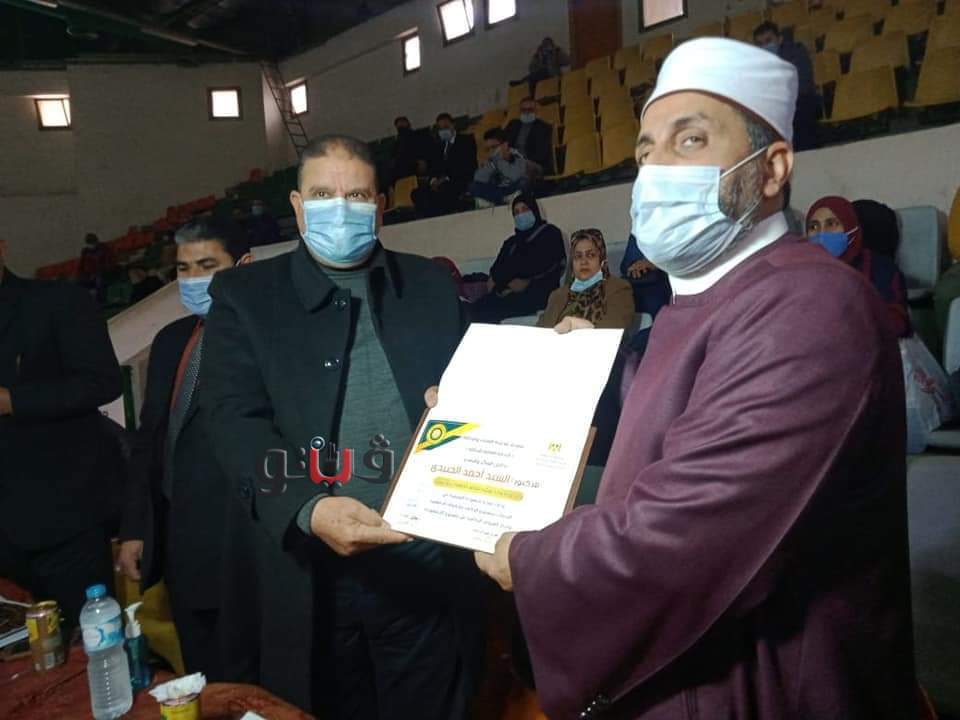 وفي نهاية الحفل الكريم قام الدكتور محمد رمضان بتقديم شهادة تقدير لوكيل الوزارة والذي قام بدوره بتقديم شهادات تقدير لكل من الدكتور محمد رمضان ومحمد قناوي وجميع المدربين ورؤساء الأقسام بالأزهر الشريف والإداريين والإخصائيين الرياضيين بالادارة العامة للرياضة.