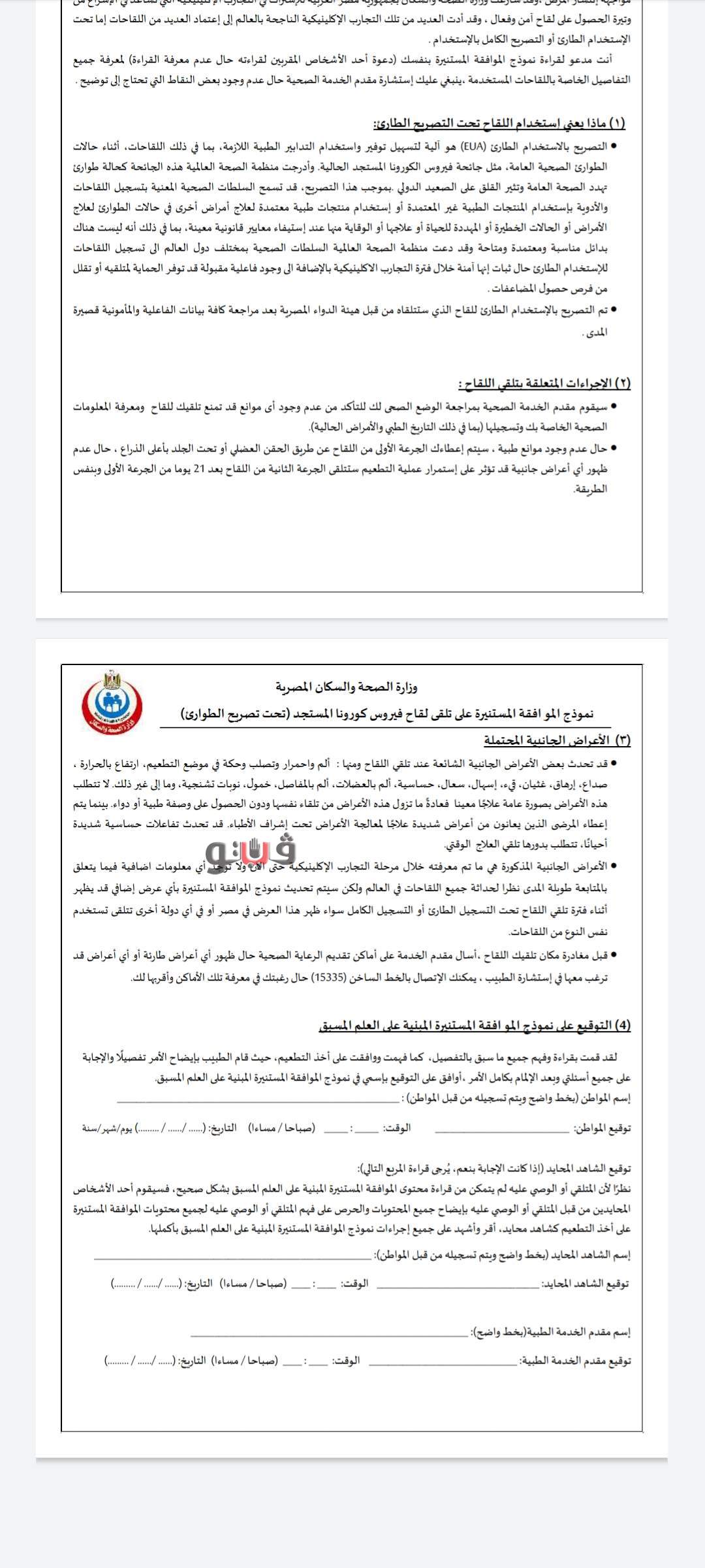 ومن ضمن خطوات الحصول على اللقاح ما يسمى بـ"الموافقة المستنيرة" وخصصت لها وزارة الصحة غرفة في أماكن تلقي اللقاح لكي يوافق متلقي اللقاح عليها قبل تناول اللقاح.