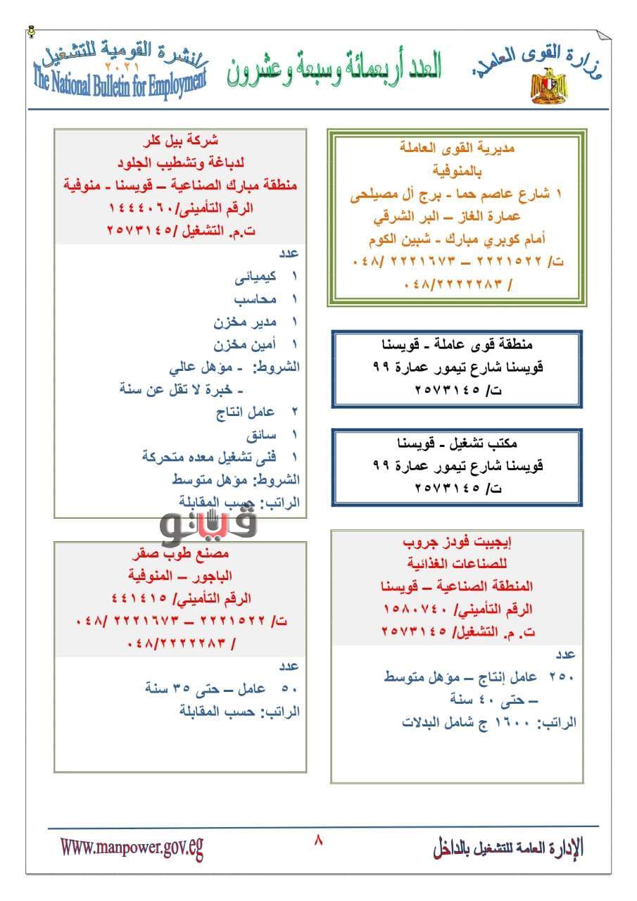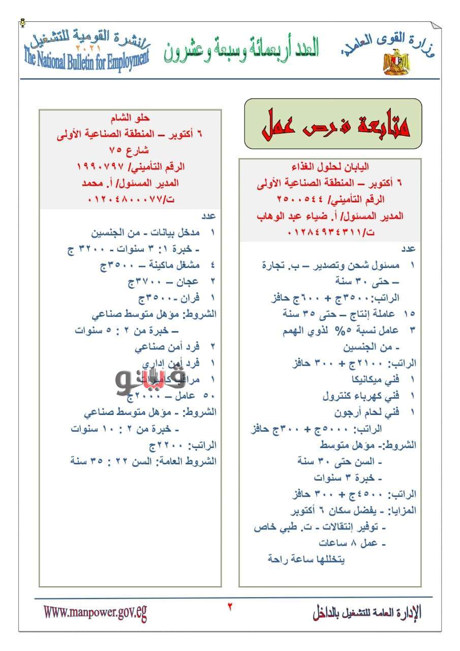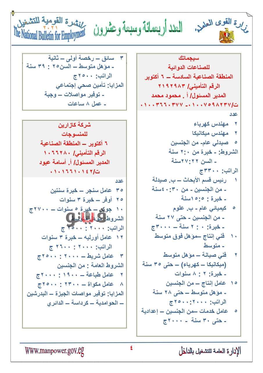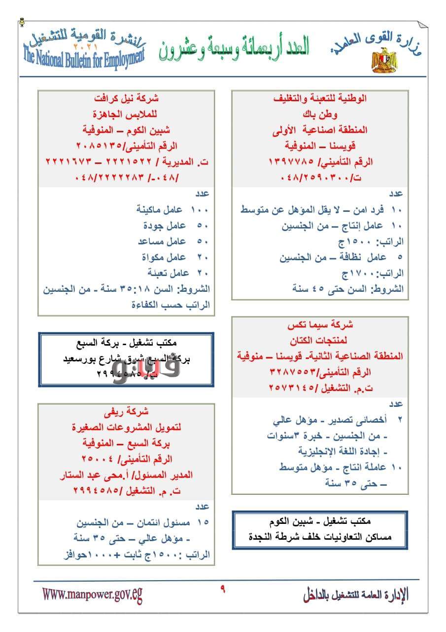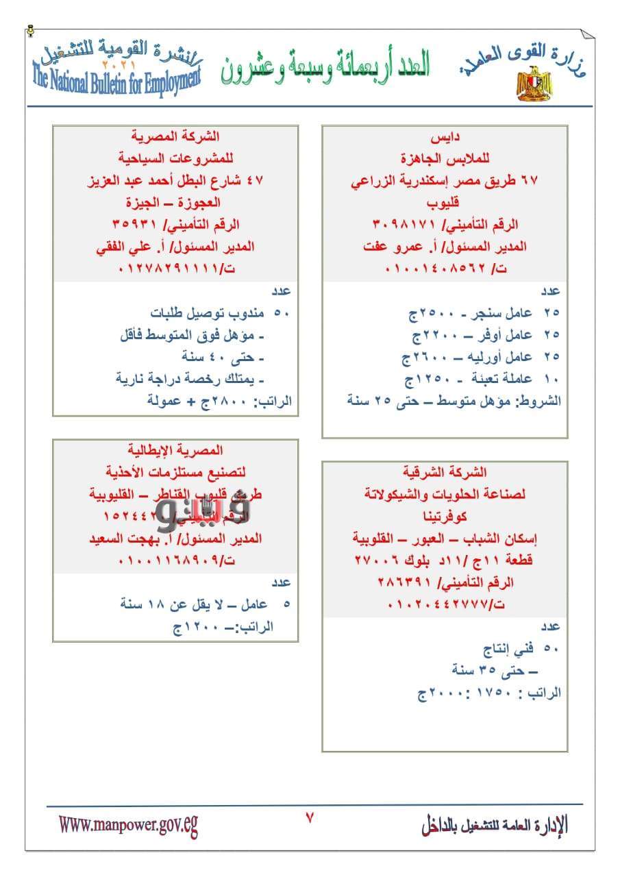 وفيما يلي تفاصيل فرص العمل بأسماء الشركات والعناوين والتليفونات وشروط شغل الوظيفة والمرتب: