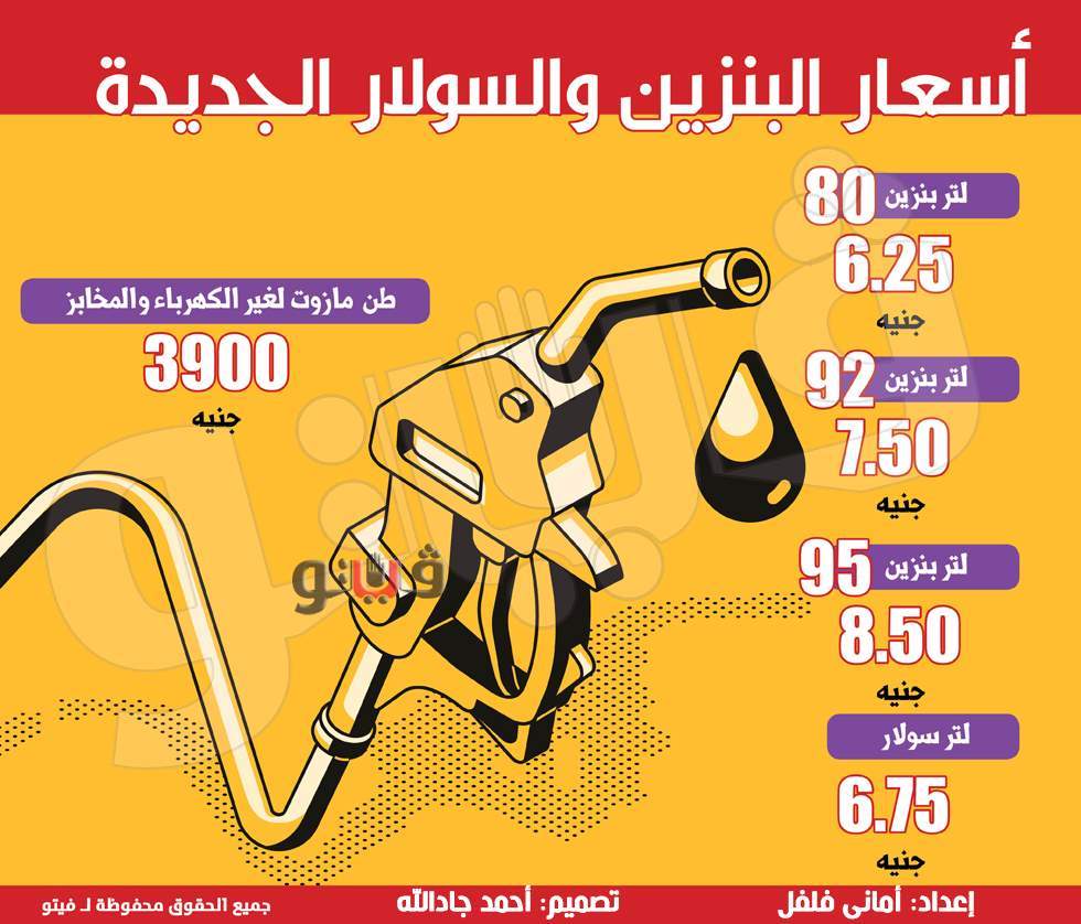 أسعار البنزين والسولار الجديدة ..إنفوجراف الأربعاء 06/يناير/2021 - 01:54 م 1/6/2021 1:54:11 PM أسعار البنزين شارك طباعة 18 حجم الخط شارك طباعة اسعار البنزين الجديدة اسعار السولار الجديدة اسعار البنزين والسولار الجديدة
