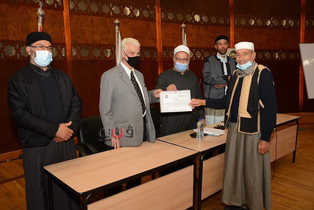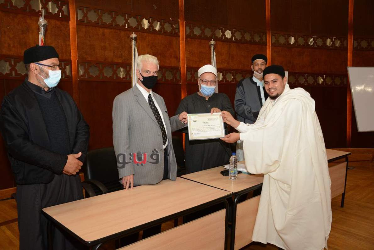 فى ختام المحاضرة تسلم المتدربون الليبيون شهادة تقدير من مسئولي المنظمة تكريما لهم باجتيازهم دورتهم التدريبية