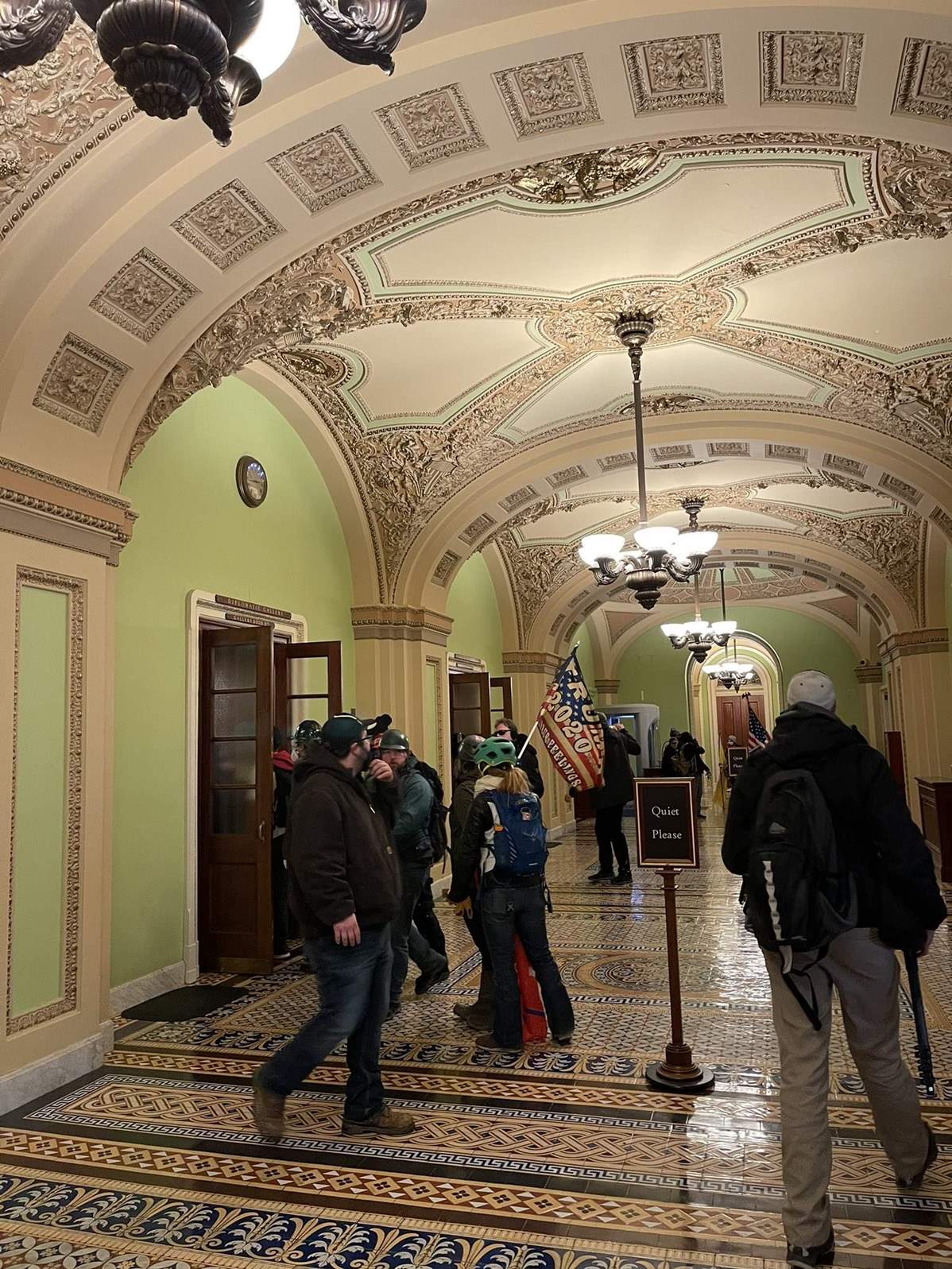 وأظهرت مقاطع مصورة عددا من المحتجين وهم يرفعون أعلاما أمريكية ولافتات كتبت عليها عبارات مؤيدة لترامب، وهم يتجولون داخل مبنى الكابيتول.
