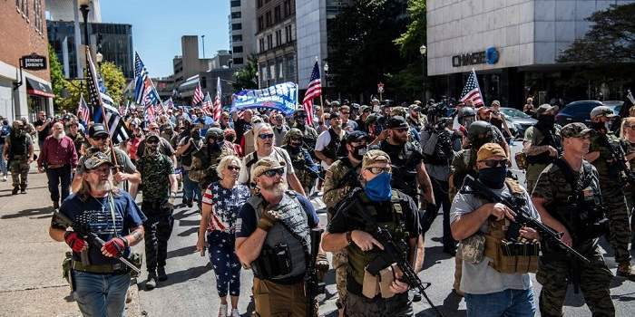 وأشار المحللون إلى أن الصور ومقاطع الفيديو التي انتشرت في الآونة الأخيرة للمتظاهرين الأمريكيين، أظهرت حمل العديد منهم للأسلحة النارية أثناء الاحتشاد في الشوارع.