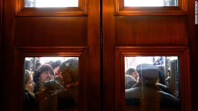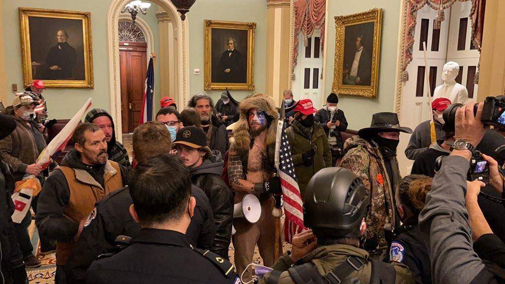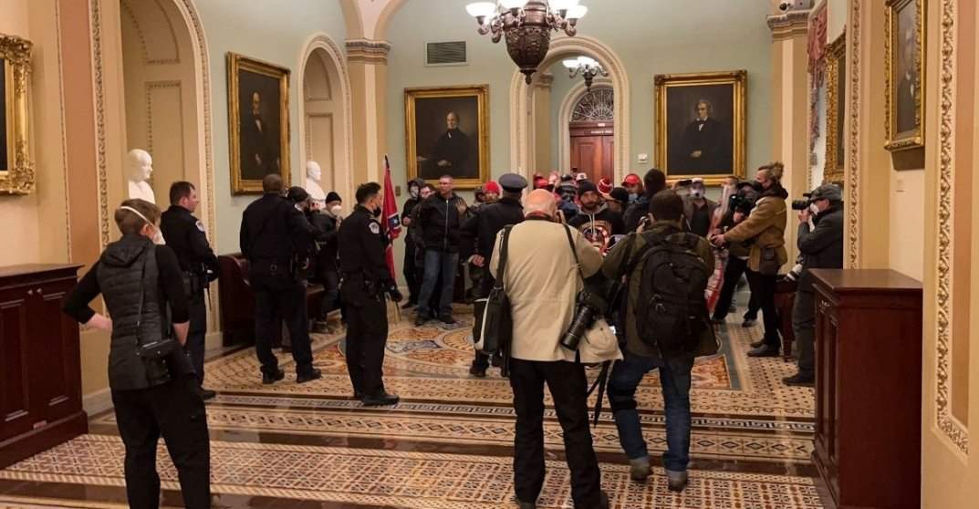 Here’s the scary moment when protesters initially got into the building from the first floor and made their way outside Senate chamber. pic.twitter.com/CfVIBsgywK— Igor Bobic (@igorbobic) January 6, 2021