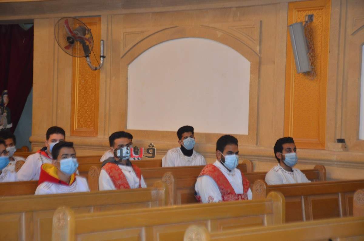 وأقيم قداس العيد وسط أجواء احتفالية ومشاركة محدودة من آباء الكهنة وخورس الشمامسة فقط، وذلك بدون حضور شعب الكنيسة، للحفاظ على حياة المصلين بعد إصابة العديد من المواطنين وزيادة حصيلة الإصابات بفيروس كورونا.