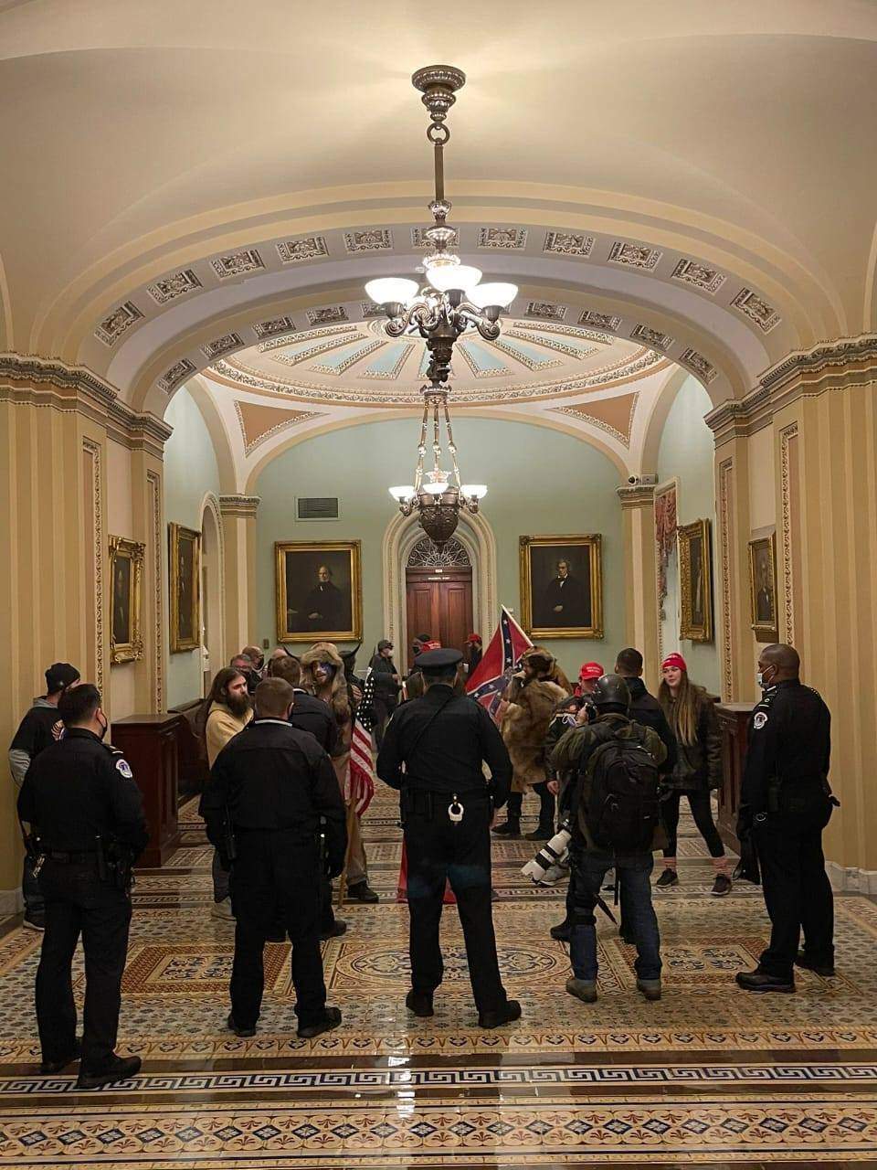 وأعلن مجلس الشيوخ فجأة تعليق جلسته، بعد ظهر أمس الأربعاء، في حين جرى إخراج نائب الرئيس، مايك بنس، بسرعة من قاعة المجلس.
