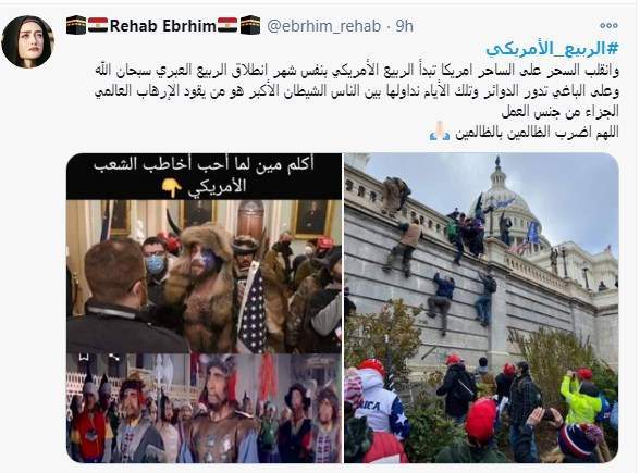 تصدر هاشتاج #الربيع_الامريكي"، موقع التواصل الاجتماعي "تويتر" بعد أحداث العنف والفوضى التي أثارها أنصار الرئيس الأمريكي المنتهية ولايته دونالد ترامب، واقتحامهم مبنى الكونجرس بتحريض منه لمنع التصديق على نتيجة الانتخابات الأمريكية والتي أسفرت عن فوز منافسه جو بايدن.