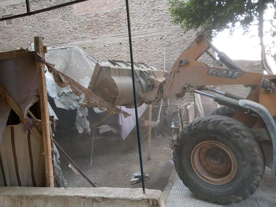 كما تم ازاله 8 حالات بناء مخالف عبارة عن اسوار وغرف من البلوك الابيض المقامة بالمخالفة على أراضي زراعية على مسطح 1120 م بمناطق عزبه نامه بمنيل شيحه وتقسيم فؤاد سلطان بالمنصورية وإيقاف أعمال بناء مخالف للدور الاول بعقار بشبرامنت بالإضافة الى إزالة هنجر على مسطح 500 م بطريق اللبينى و وغرف وتندات من الصاج وشاسيهات لإقامه قاعات أفراح بمنطقة شبرامنت وجميعهم بمركز ومدنة أبو النمرس الى جانب ازالة سور من البلوك الحجرى تتراوح اطوالها ما بين 30 الى 300 م2 وغرف بمساحه 25 م2 متعدية على املاك الدولة بمنطقة الدائرى بمركز الواحات ومدينة الباويطى، وإزاله اعمال بناء مخالف بعقار متفرع من شارع الرشاح ببولاق الدكرور وازاله جمالون مخالف بشارع عمرو بن العاص بحى الهرم.