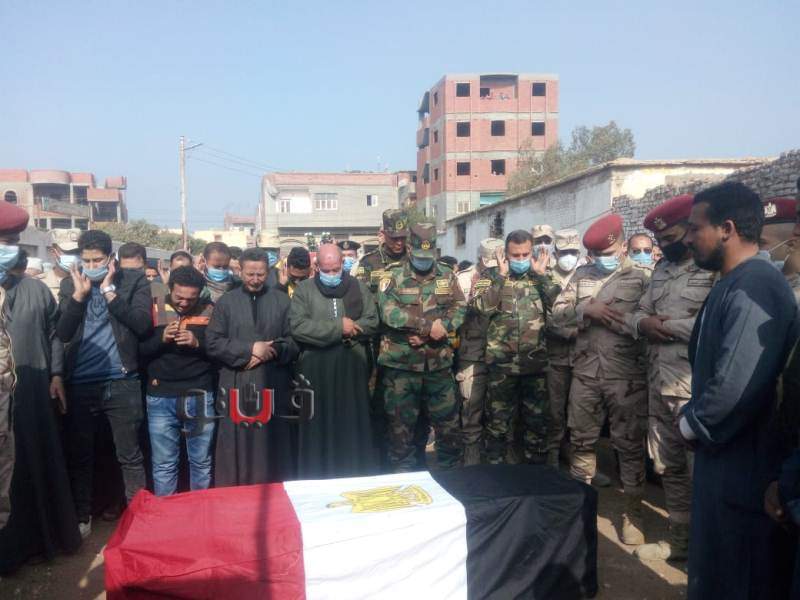 وانطلقت الجنازة العسكرية بمسقط رأس الشهيد بقرية دمليج بمنوف وسط جمع من الأهالي، وردد المشيعون هتافات معادية للإرهاب منها " لا إله إلا الله والشهيد حبيب الله ، يا شهيد نام وارتاح وإحنا نكمل الكفاح ".