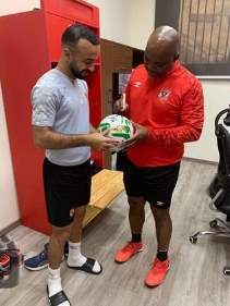 وحرص أفشة على إحضار كرة مباراة النهائى ونال توقيع موسيمانى المدير الفنى للفريق واللاعبين عليها قبل انطلاق مران الفريق اليوم.