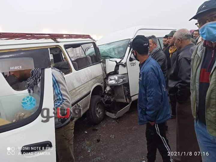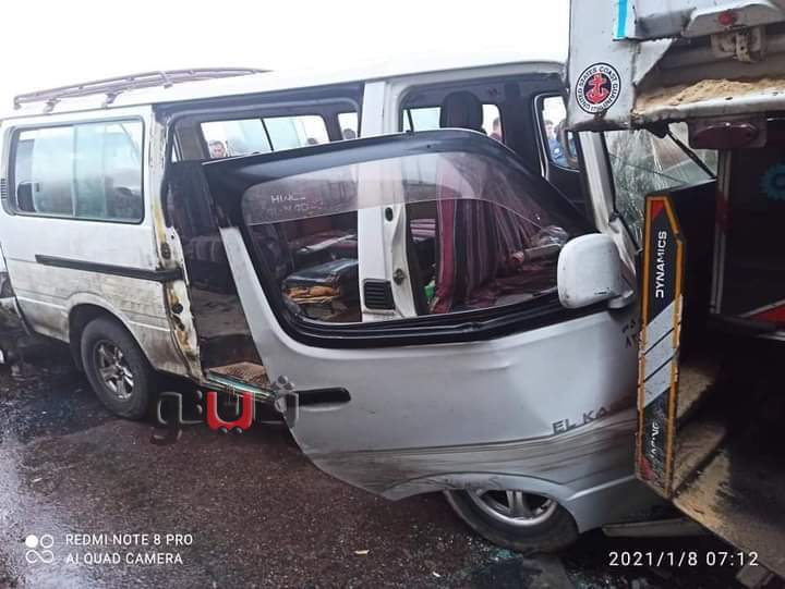 شهد طريق (مطروح - الإسكندرية) الساحلي صباح اليوم الجمعة، حادث تصادم سيارتي ميكروباص بسيارة نقل ثقيل فى الكيلو 57 قبل كارتة مطروح بسبب الشبورة المائية الكثيفة مما اسفر عن إصابة 21 شخصا ووفاة اثنين.