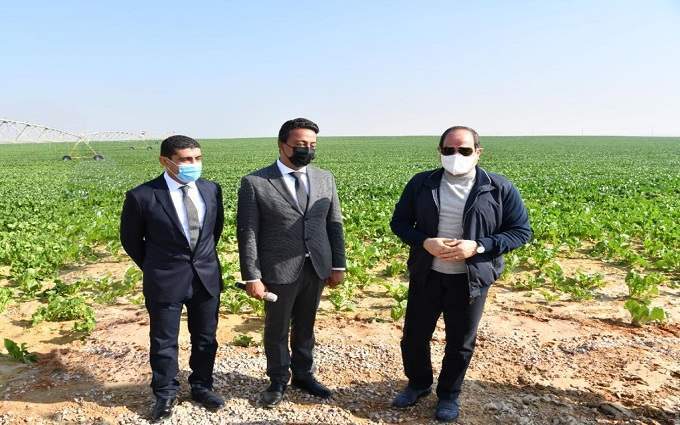 تفقد الرئيس عبد الفتاح السيسى اليوم الجمعة مشروع مستقبل مصر للإنتاج الزراعي باستصلاح ٥٠٠ ألف فدان على امتداد طريق محور الضبعة بالاتجاه الشمالى الغربي للجمهورية.