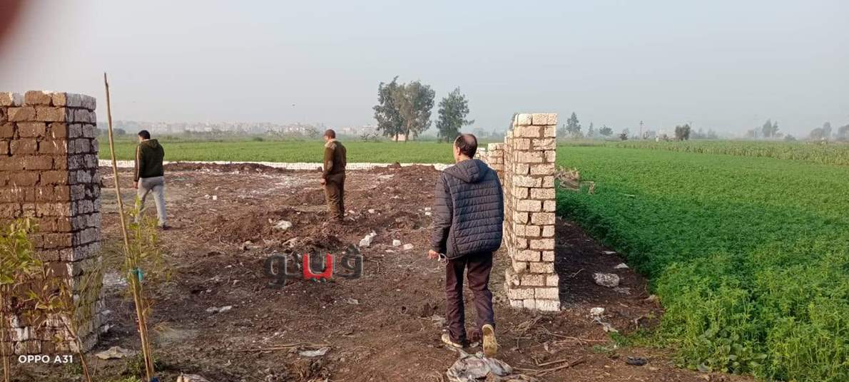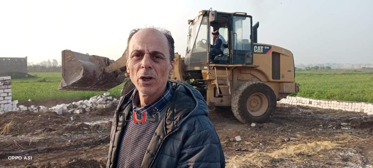 نائب رئيس مدينة المنصورة يزيل حالتي بناء على أرض زراعية