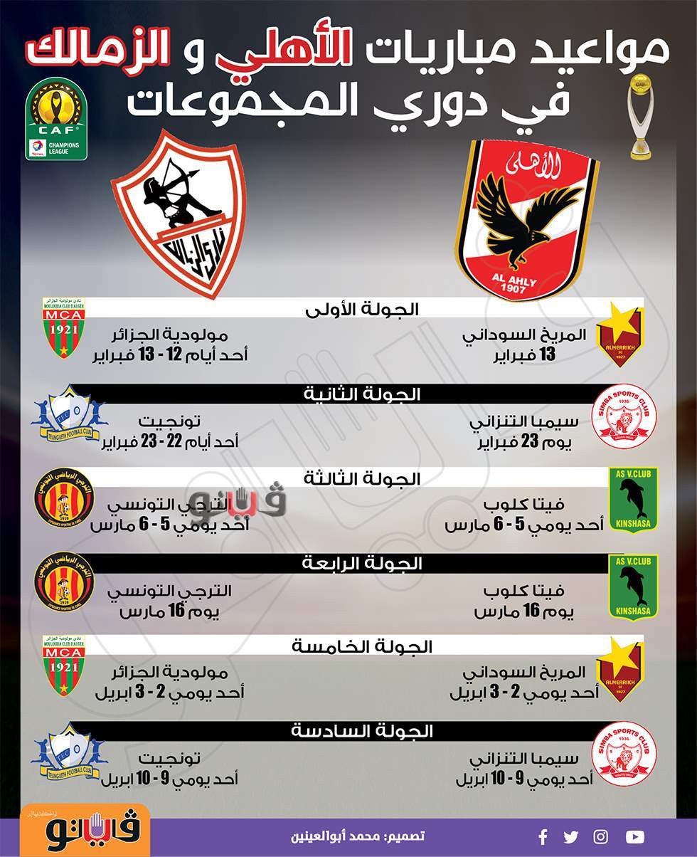 مواعيد مباريات الأهلي والزمالك في دوري المجموعات|إنفوجراف الجمعة 08/يناير/2021 - 07:35 م 1/8/2021 7:35:51 PM مواعيد مباريات الأهلي والزمالك في دوري المجموعات شارك طباعة 18 حجم الخط شارك طباعة الزمالك الأهلي بطولة أفريقيا قرعة دوري الأبطال