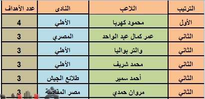 واحتل كهربا المركز الأول فى جدول الهدافين برصيد أربعة أهداف، ويحتل خمسة لاعبين المركز الثاني بجدول الهدافين برصيد 3 أهداف لكل منهم وهم: عمر كمال(المصري) ومحمد شريف(الأهلي) وأحمد سمير(طلائع الجيش) ومروان حمدي(مصر المقاصة)ووالتربواليا (الأهلي)