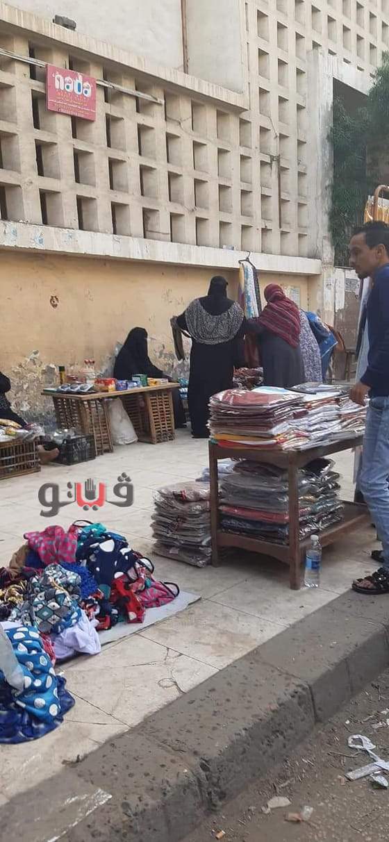 انتشرت مجموعات من الباعة الجائلين أمام بوابة قصر ثقافة دمياط، ليتحول المشهد إلى سوق عشوائي على بعد أمتار قليلة من ديوان عام المحافظة.