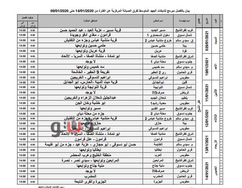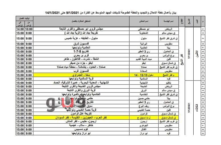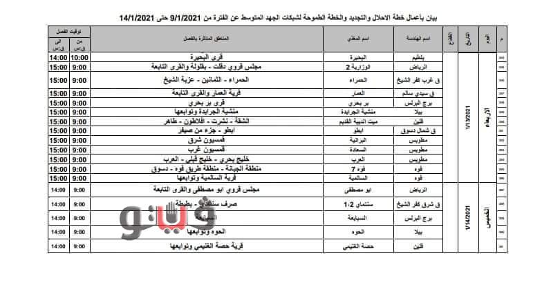 أعلنت شركة شمال الدلتا لتوزيع الكهرباء المناطق التى سيتم قطع الكهرباء عنها بمحافظة كفر الشيخ خلال الأسبوع الجارى وذلك نظرا لأعمال الصيانة التى تتم بالشبكة الكهربائية.