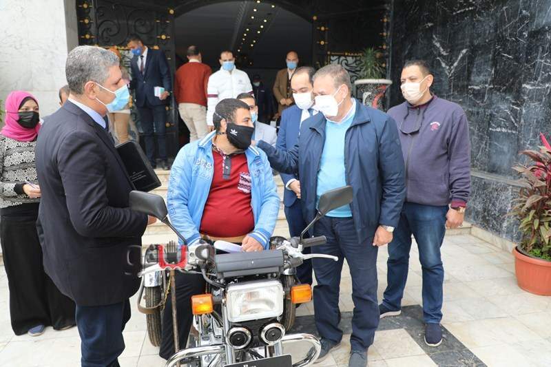 وقام بتسليم ( 3 ) كراسي ودراجة بخارية " موتوسيكل" وكذا تسليم سماعة أذن لمواطن يعانى من ضعف شديد بالسمع وذلك مراعاة لظروفهم الصحية والاجتماعية ومساعدتهم على سهولة الحركة وممارسة حياتهم بشكل طبيعي، جاء ذلك بحضور نائبه محمد موسى واللواء عماد يوسف السكرتير العام المساعد ووكيل وزارة التضامن الاجتماعي، ومدير مؤسسة التكافل الاجتماعي.