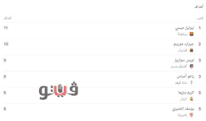 جدول ترتيب الدوري الإسباني وقائمة الهدافين