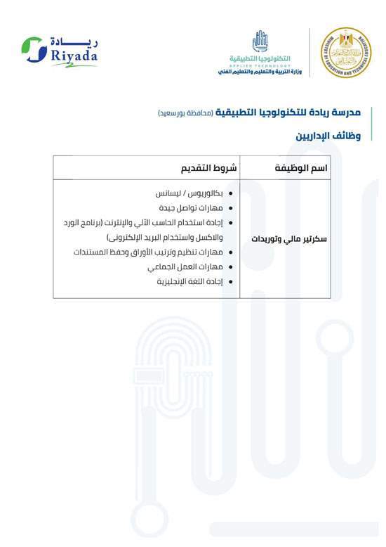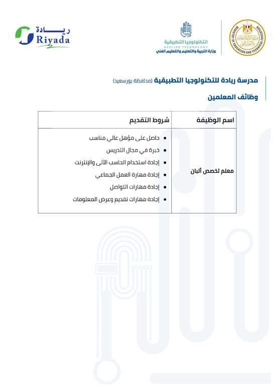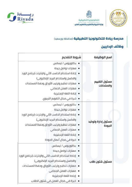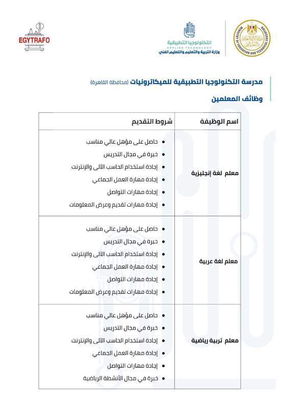 4- يتاح التقديم للوظائف المتخصصة الفنية لمعلمي التعليم الفني فقط بمديريات التربية والتعليم