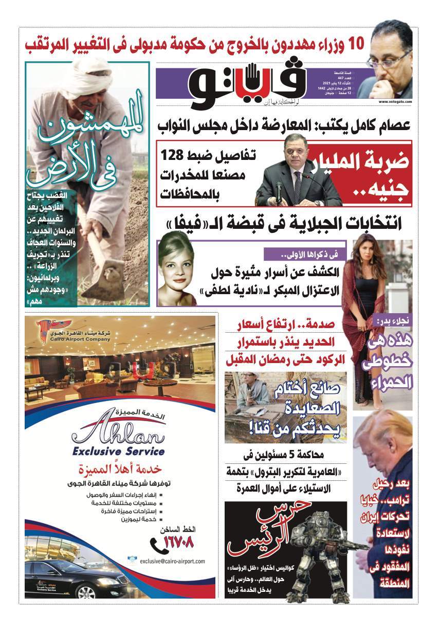 فيتو تكشف في عددها الجديد.. 10 وزراء مهددون بالخروج من حكومة مدبولى فى التغيير المرتقب