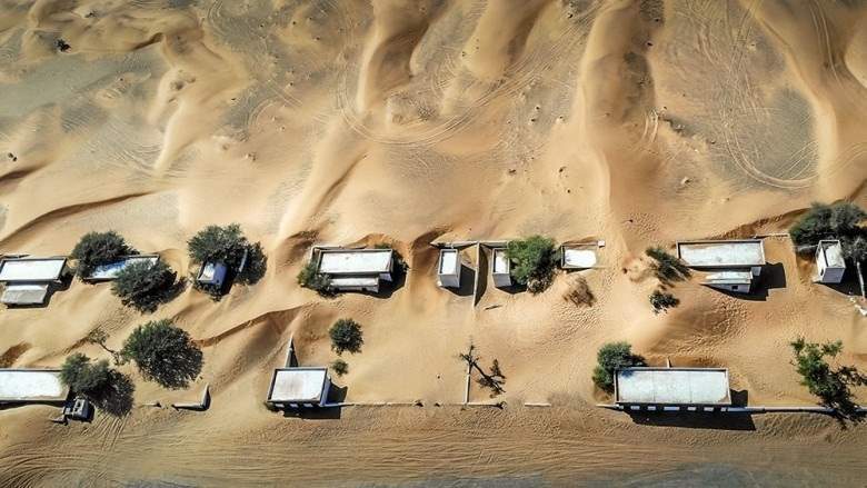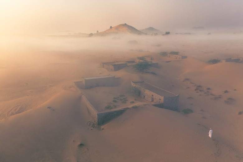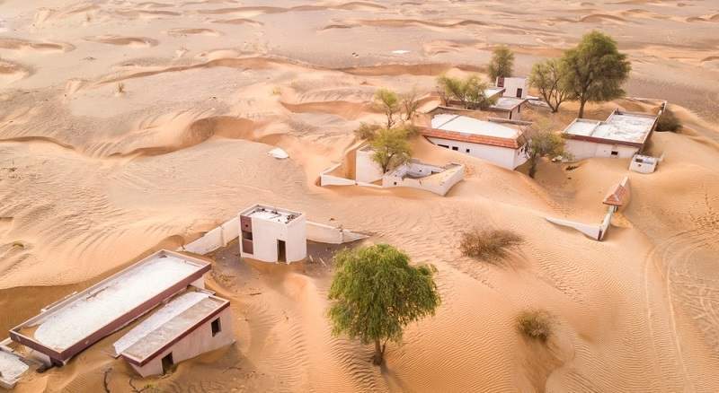 تقع قرية المدام المهجورة في صحراء الإمارات، وتحديدًا على بعد 60 كيلو مترًا من مدينة دبي، ابتلعتها رمال الصحراء أيضًا، لكن الباقي من منازلها (13 منزلًا) ومسجدها الكبير يشهد على حياة كاملة كانت تزدهر بها القرية قبل أعوام قريبة.